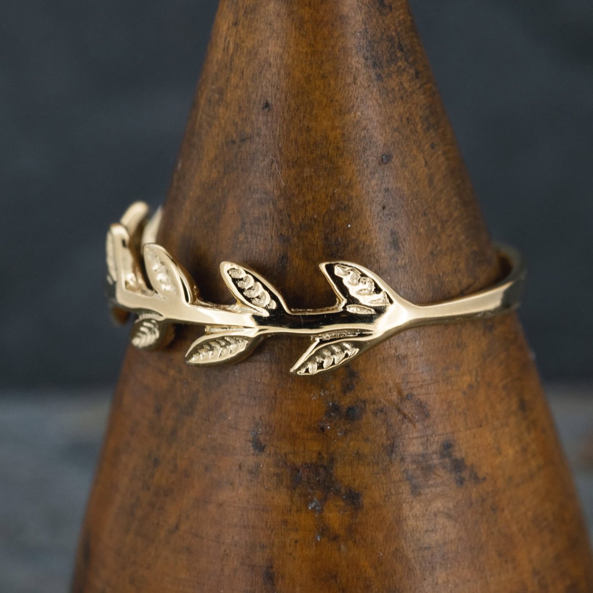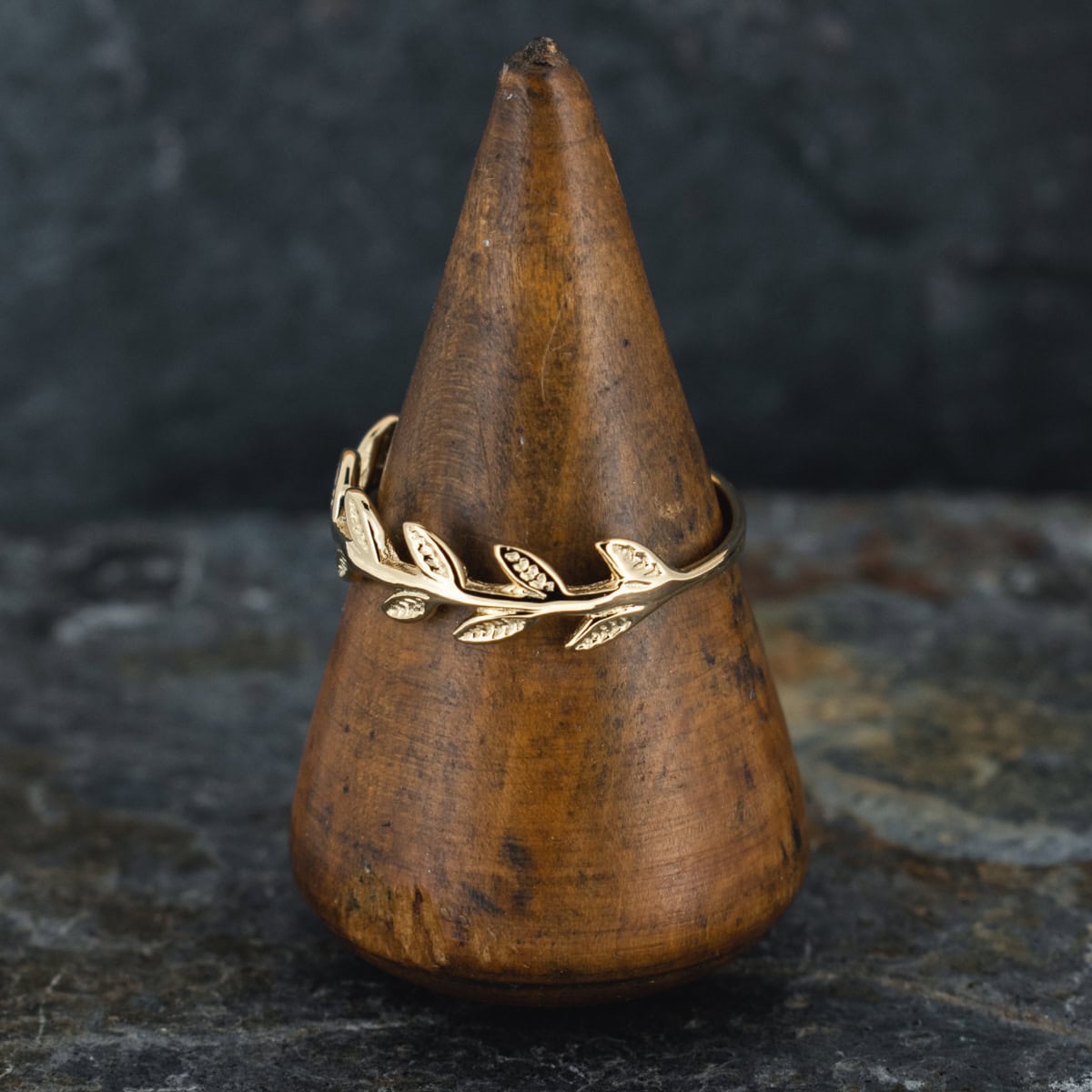 This pretty ring showcases detailed laurel leaves that wrap around your finger, creating a unique and graceful look. The laurel shrub was traditionally used to weave wreaths and crowns that were symbols of victory in the sporting events of ancient Greece. Today, laurel is synonymous with achievement. Available in 3 finishes: