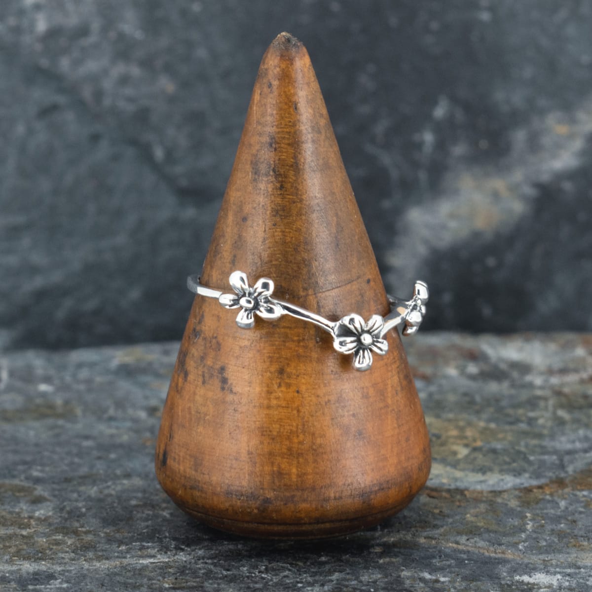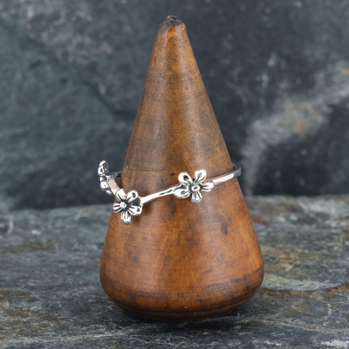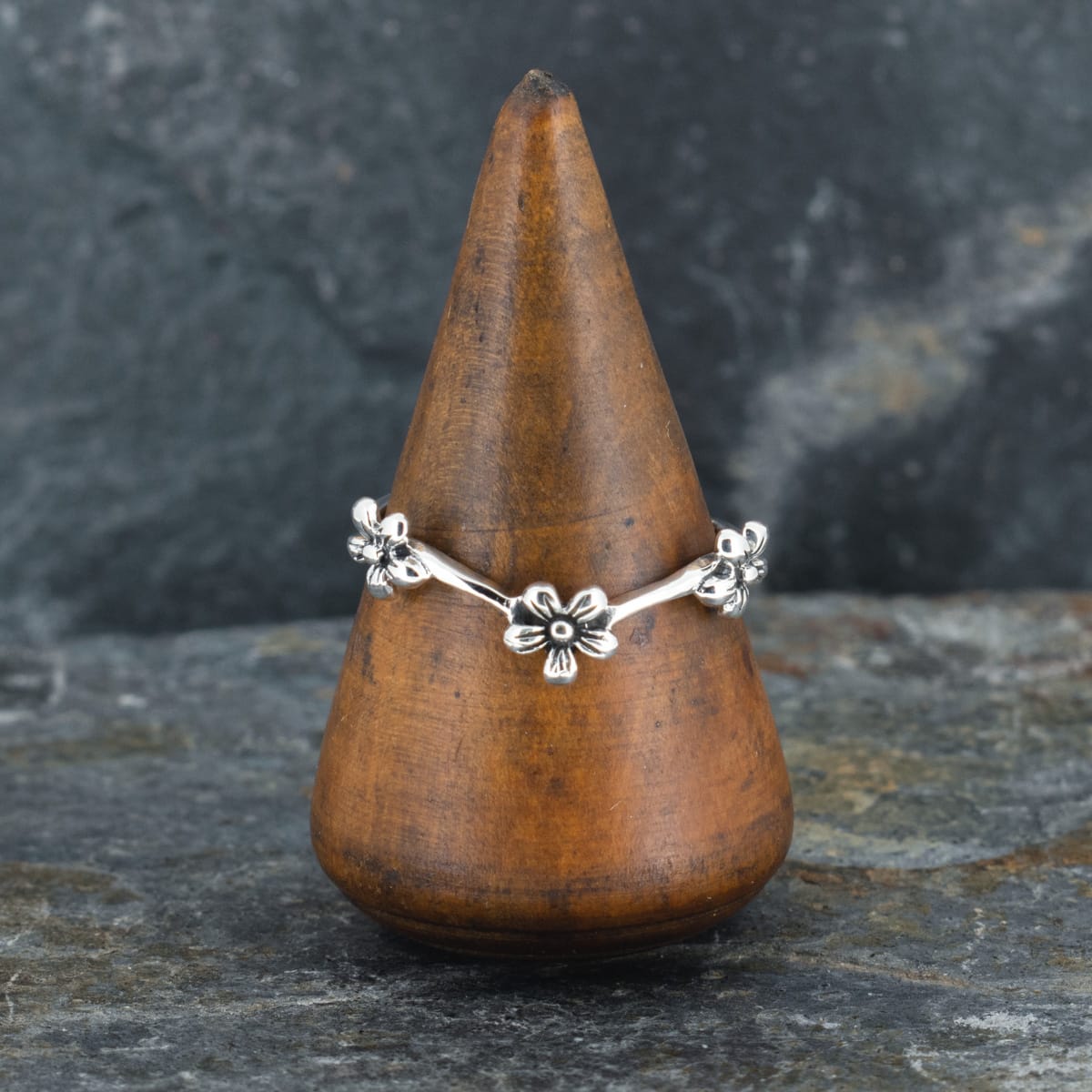 This delicate 925 Sterling silver ring features a pretty Scottish wildflower garland, based on the forget-me-not, with a unique wishbone shape. The Sterling silver is oxidised to highlight the intricate details. Great for stacking rings and perfect for everyday wear. This dainty ring would make a thoughtful bridesmaid or flower girl gift.