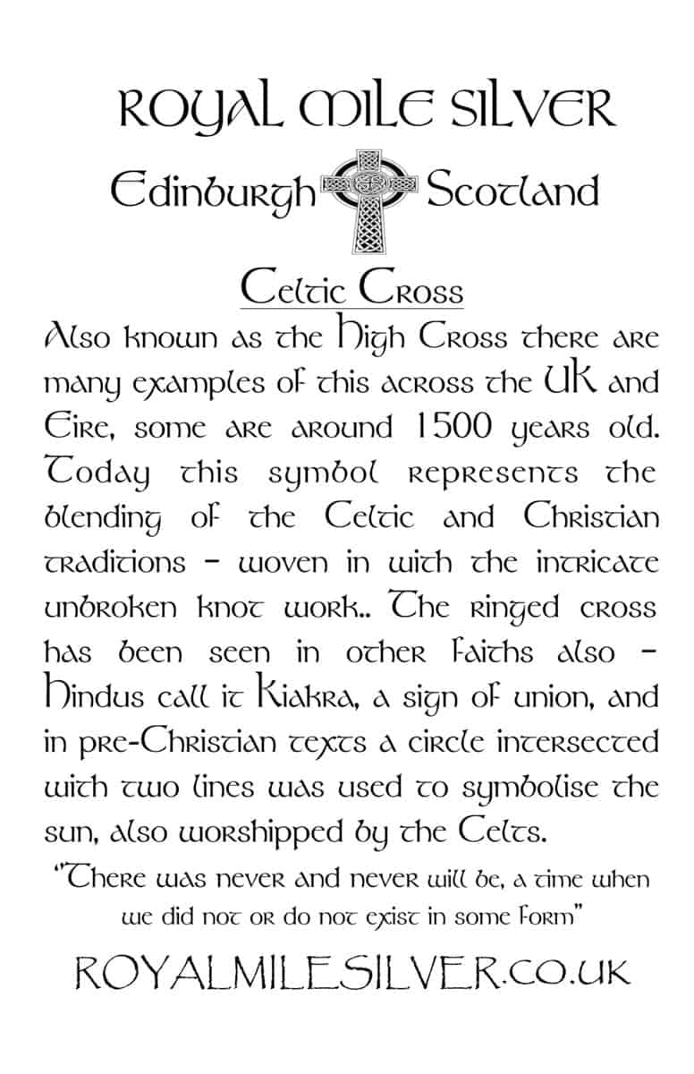 Also known as the High Cross there are many examples of this across the UK and Eire, some are around 1500 years old. Today this symbol represents the blending of the Celtic and Christian traditions – woven in with the intricate unbroken knot work. The ringed cross has been seen in other faiths also – Hindus call it Kiakra, a sign of union, and in pre-Christian texts a circle intersected with two lines was used to symbolise the sun, also worshipped by the Celts.