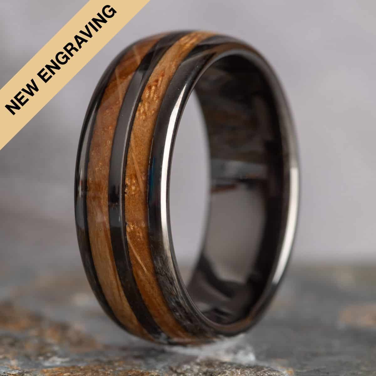 Whisky Barrel Wood and Stag Antler Black Tungsten Ring (6mm wide)
