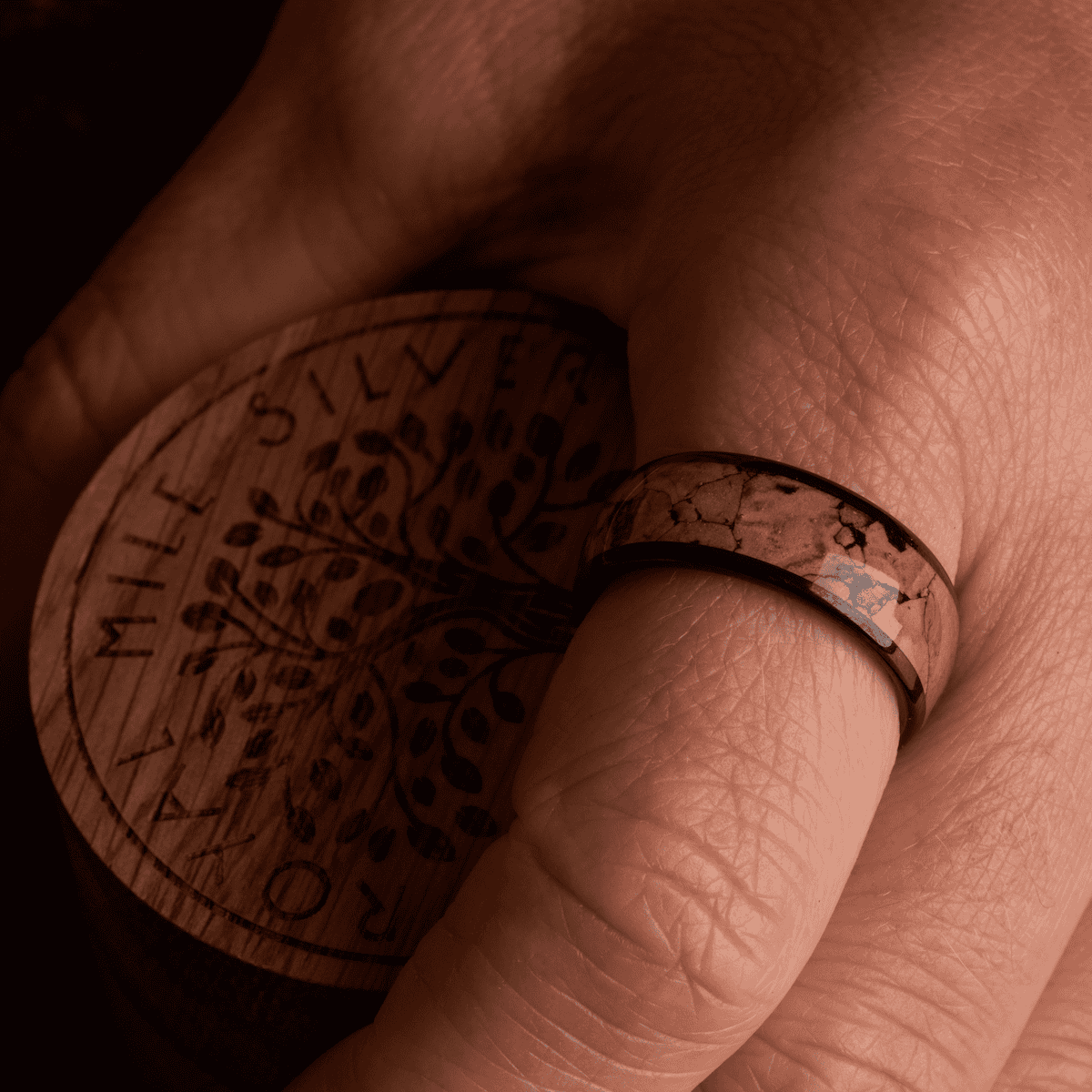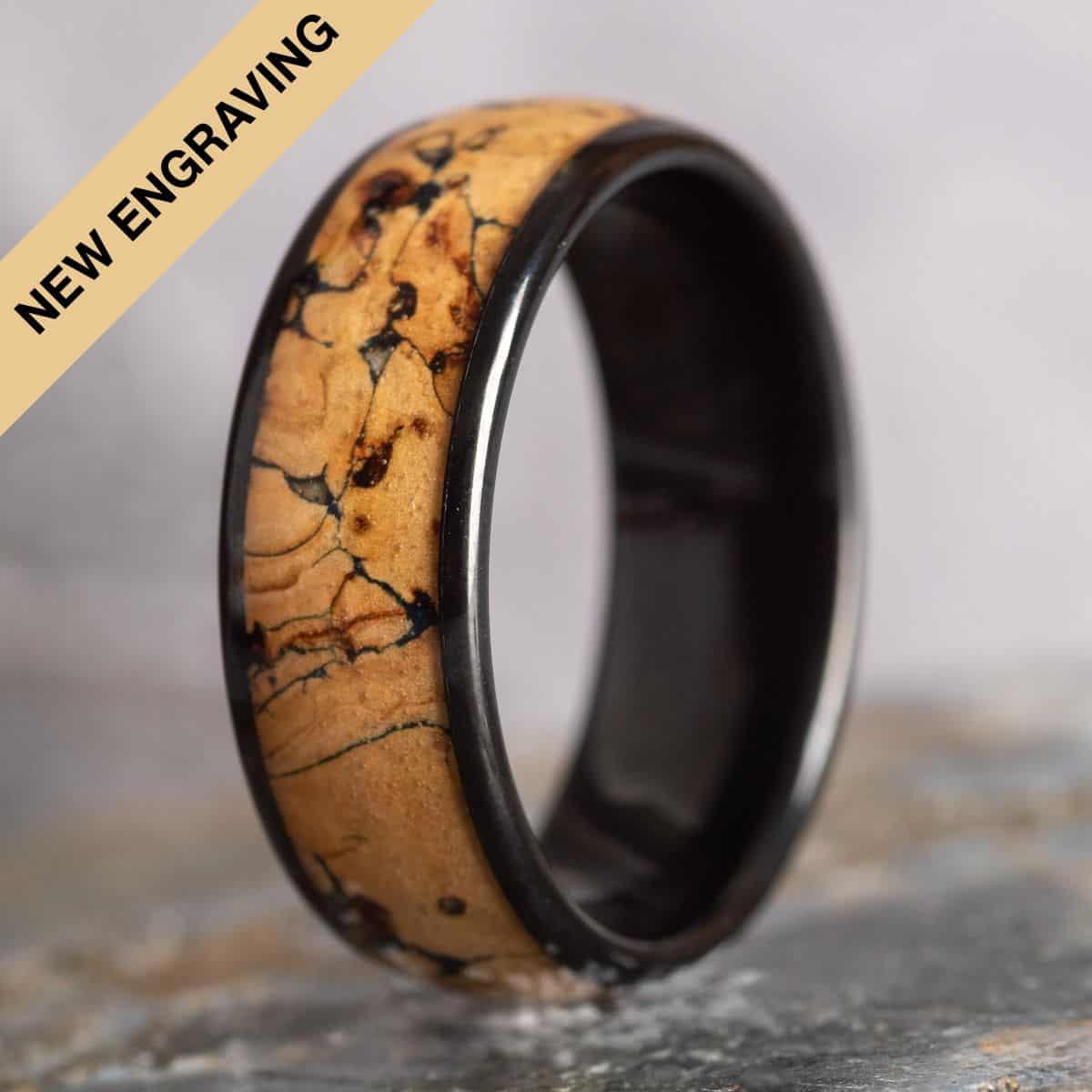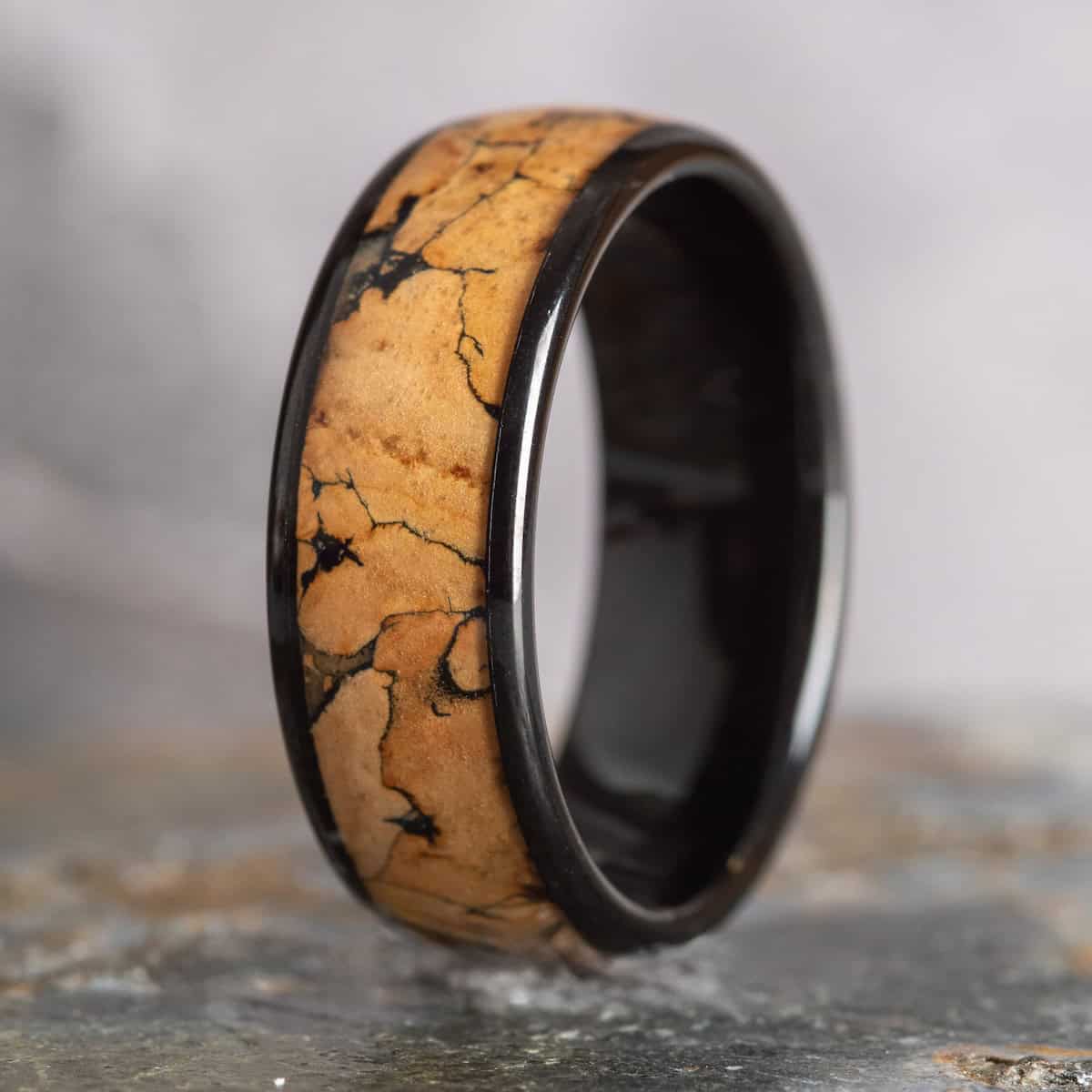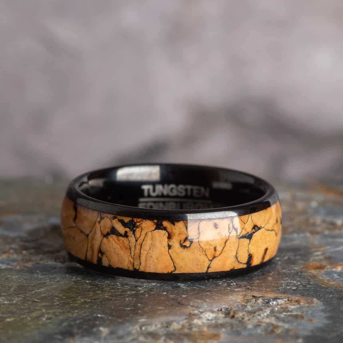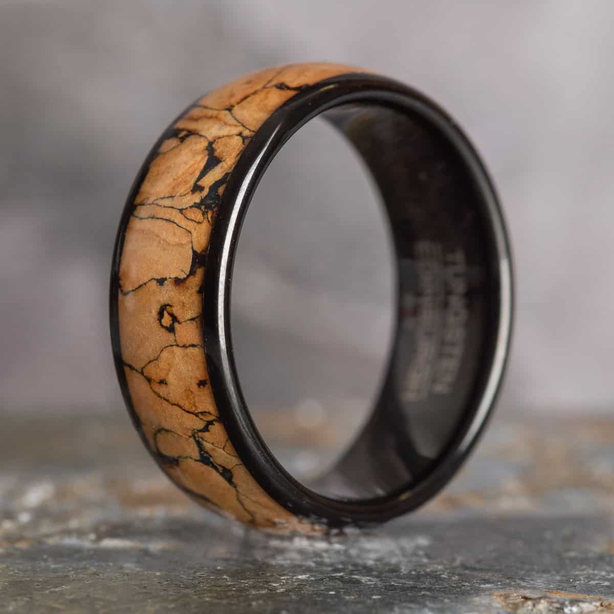 Whisky Barrel Wood and Stag Antler Black Tungsten Ring (6mm wide)